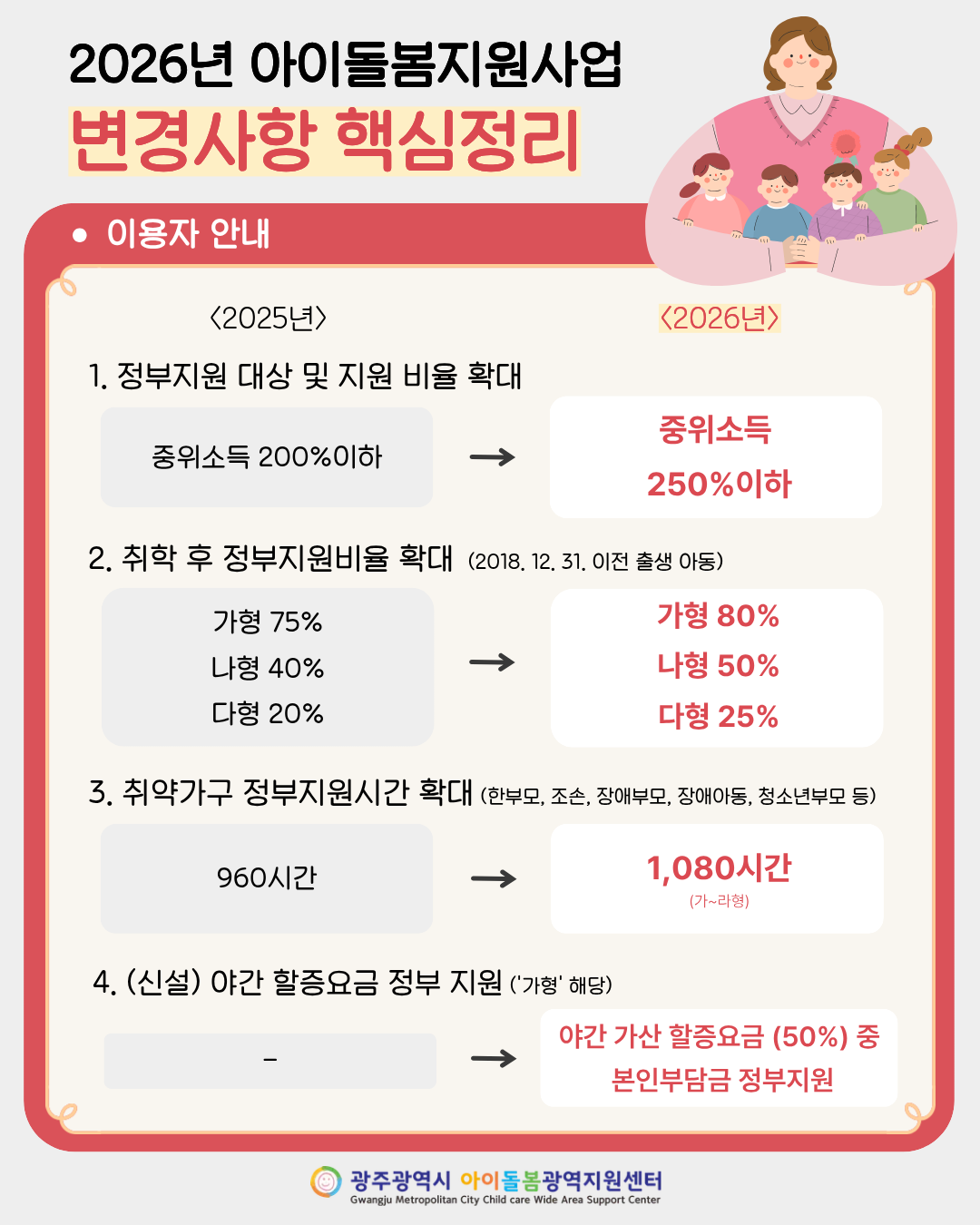 2026년 아이돌봄지원사업 변경사항 핵심정리 - 이용자 안내